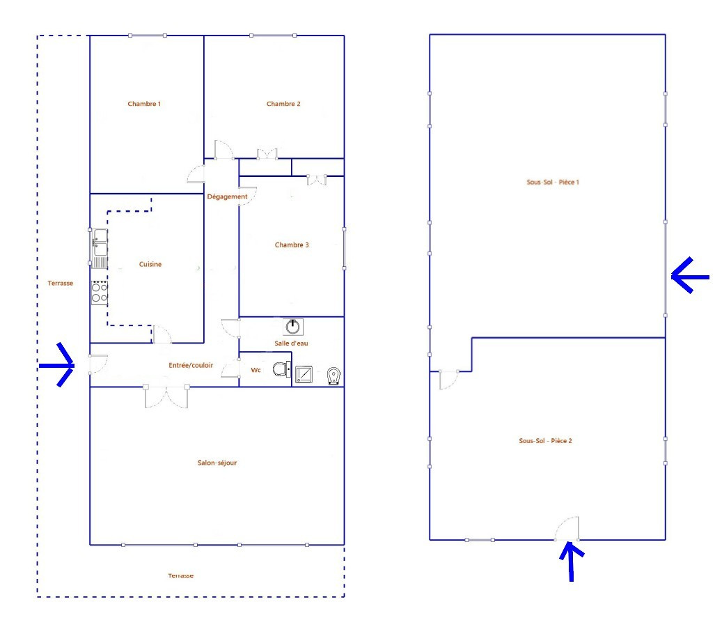 Maison en pierres de 110 m² env. avec sous-sol complet aménageable.