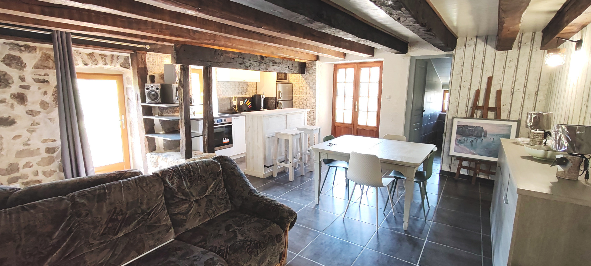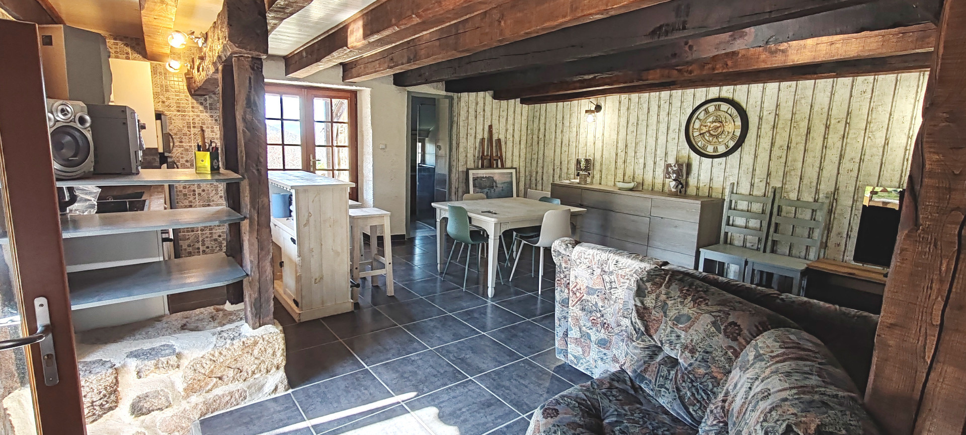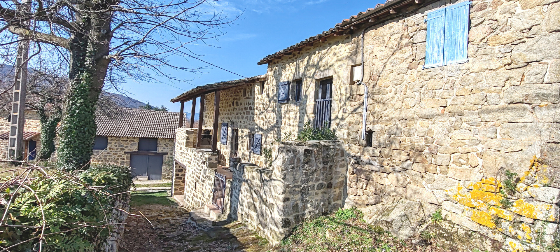 Axe LAMASTRE - TOURNON (BOUCIEU-LE-ROI) - Dans petit hameau - Maison en pierres d'environ 87 m2 ayant bénéficié d'une rénovation complète. Une terrasse avec son four à pain permettant d'accéder à la pièce de vie avec sa cuisine ouverte aménagée et équipée, une salle d'eau et wc. A l'étage 2 chambres pour 33 et 17m². Les plus ! 2 caves voutées , une remise, une chaufferie. Vient s'ajouter une grange à rénover sur 2 niveaux de 52m² avec terrain attenant. Le tout sur 399 m2. PRIX: 168.000 € (honoraires charge vendeur) RÉF 4845 CLASSE ÉNERGIE : E Montant estimé des dépenses annuelles d?énergie pour un usage standard selon le prix moyen des énergies indexés au 1er janvier 20223 : entre 1940 € et 2660€. Les informations sur les risques auxquels ce bien est exposé sont disponibles sur le site Géorisques : www.georisques.gouv.fr