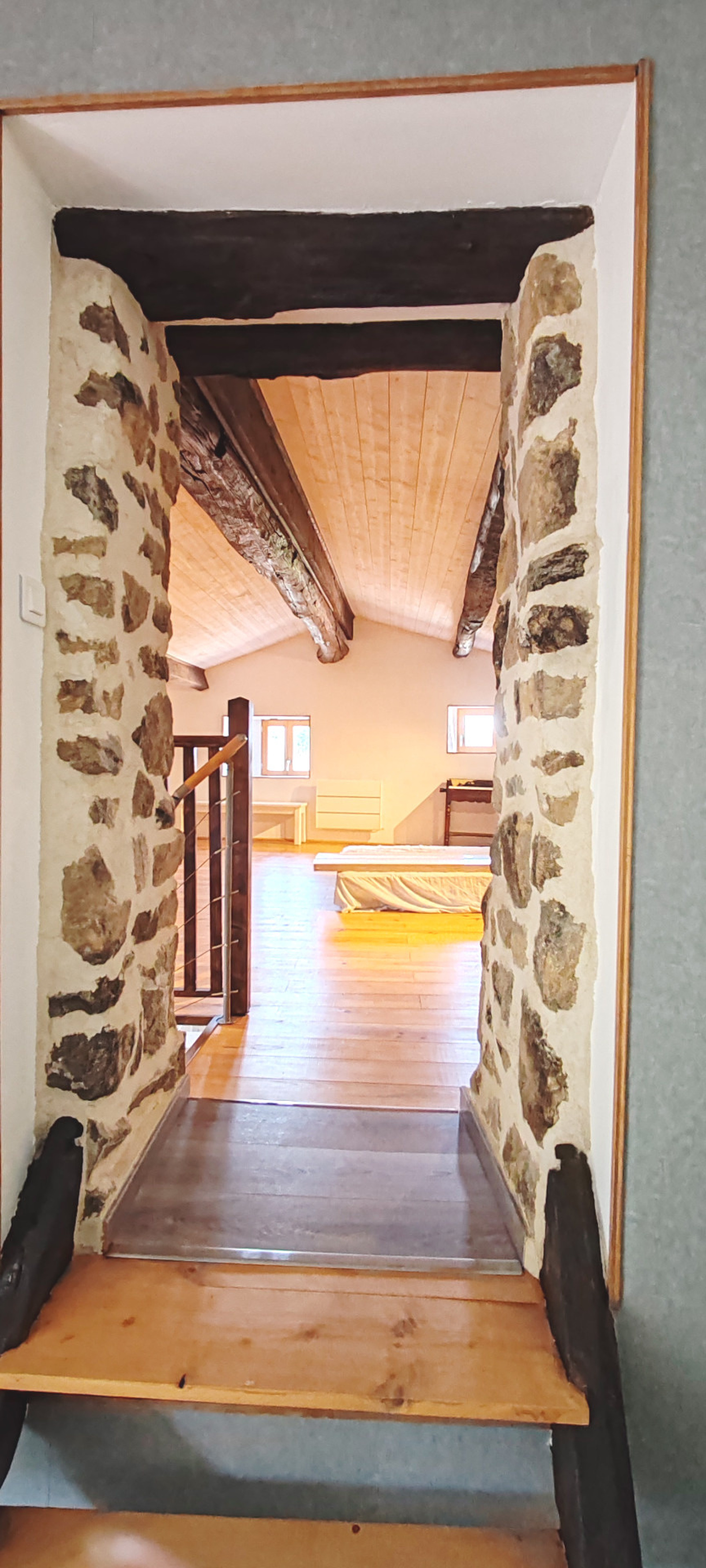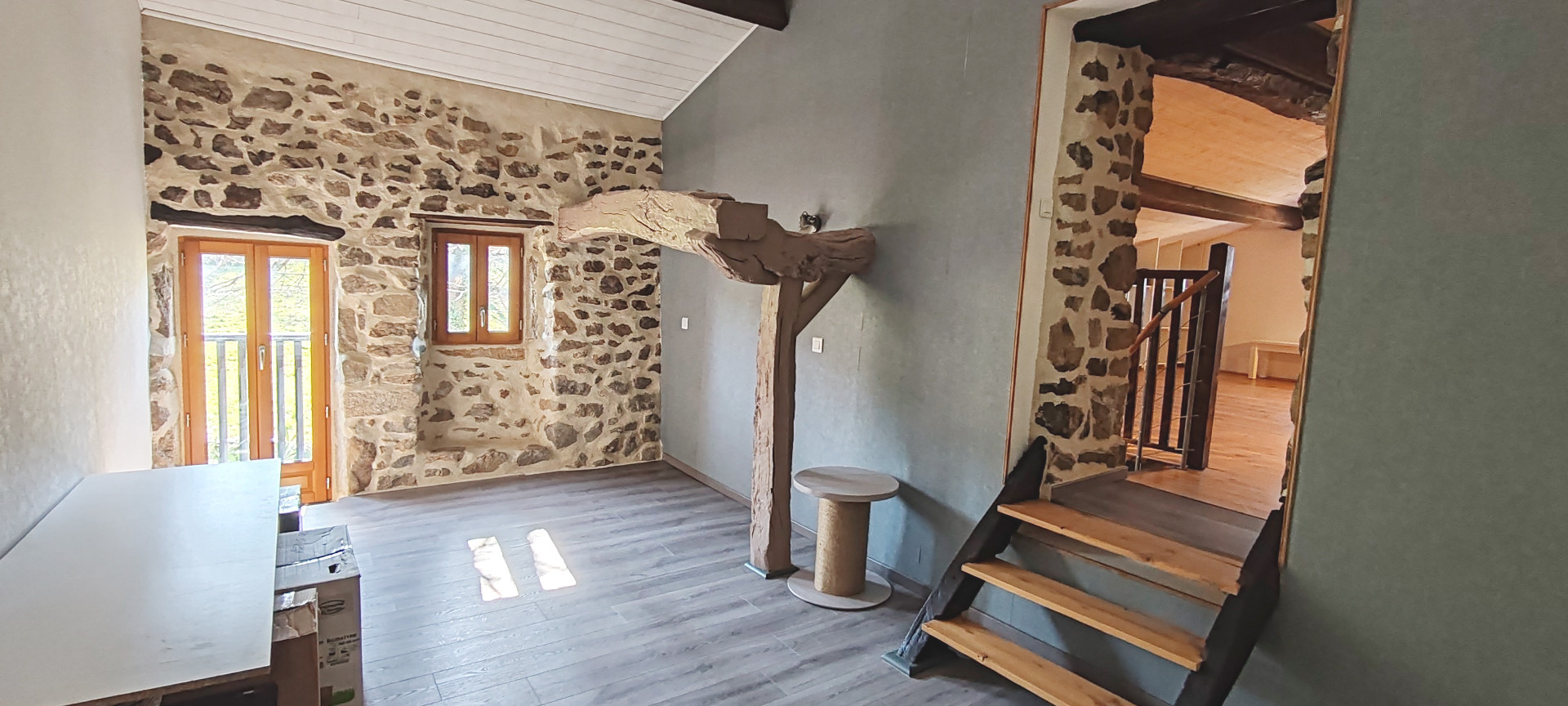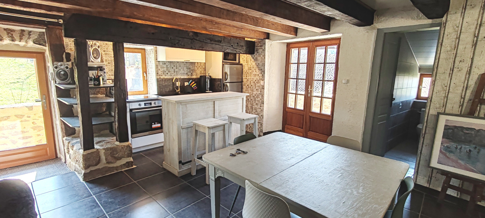 Axe LAMASTRE - TOURNON (BOUCIEU-LE-ROI) - Dans petit hameau - Maison en pierres d'environ 87 m2 ayant bénéficié d'une rénovation complète. Une terrasse avec son four à pain permettant d'accéder à la pièce de vie avec sa cuisine ouverte aménagée et équipée, une salle d'eau et wc. A l'étage 2 chambres pour 33 et 17m². Les plus ! 2 caves voutées , une remise, une chaufferie. Vient s'ajouter une grange à rénover sur 2 niveaux de 52m² avec terrain attenant. Le tout sur 399 m2. PRIX: 168.000 € (honoraires charge vendeur) RÉF 4845 CLASSE ÉNERGIE : E Montant estimé des dépenses annuelles d?énergie pour un usage standard selon le prix moyen des énergies indexés au 1er janvier 20223 : entre 1940 € et 2660€. Les informations sur les risques auxquels ce bien est exposé sont disponibles sur le site Géorisques : www.georisques.gouv.fr