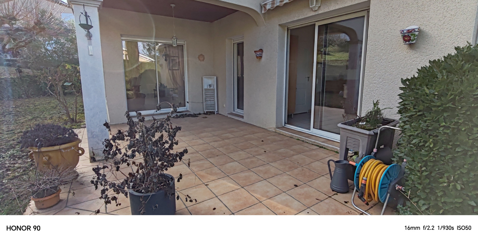 Un vaste hall desservant une grande et lumineuse pièce de vie s'ouvrant sur la terrasse couverte, une cuisine indépendante donnant également sur le jardin, une suite parentale avec salle d'eau et dressing, un cellier et un wc.